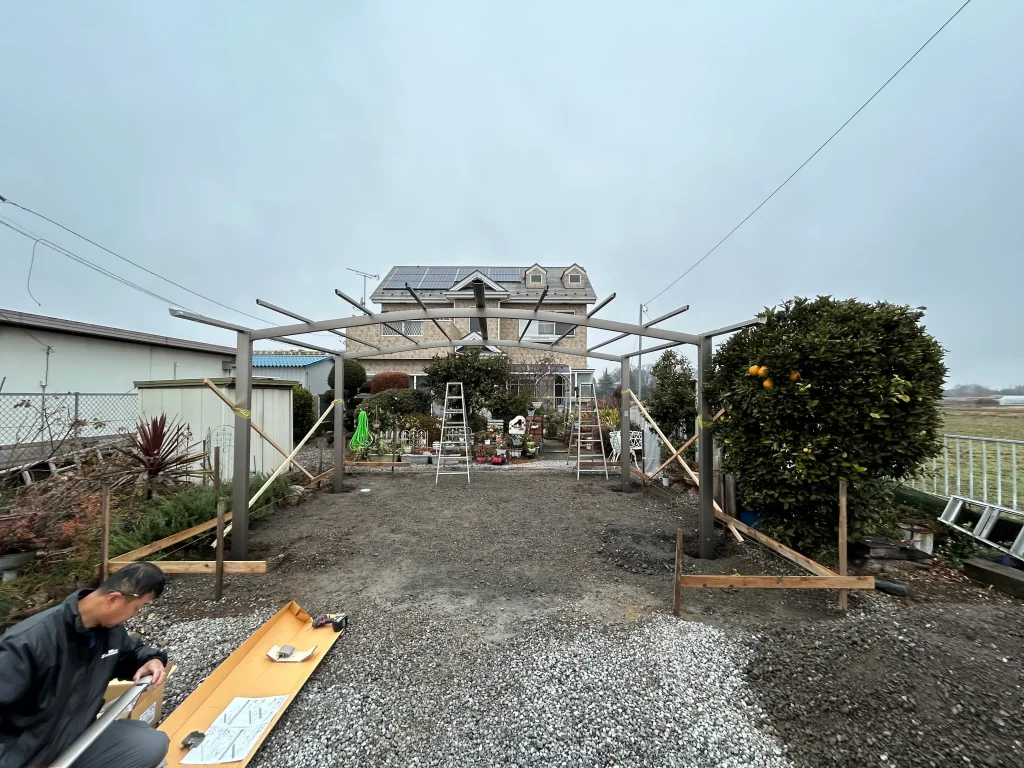 駐車スペースは日々使う場所なので、屋根があるだけで快適さが大きく変わります。今回は、土間コンクリートの駐車スペースにあわせてカーポートを設置しました。
