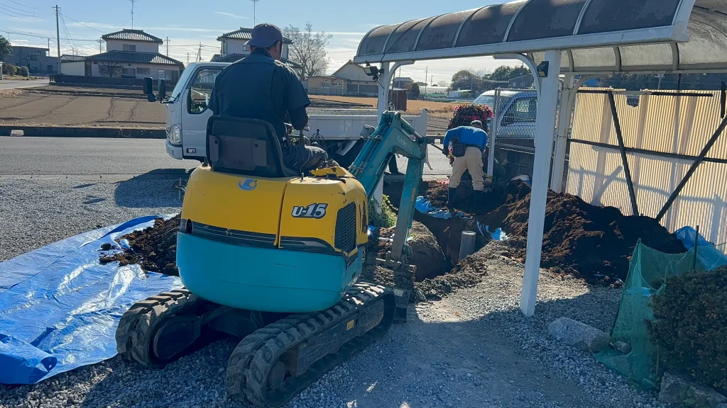 今回は、元々浄化槽だった五霞町 O様邸の住宅で本下水へ繋ぎ替え(切替)工事を行い、同時にカーポート設置・庭木の伐採剪定とつる撤去・勝手口ドア交換(防犯性向上)までまとめて施工いたしました。