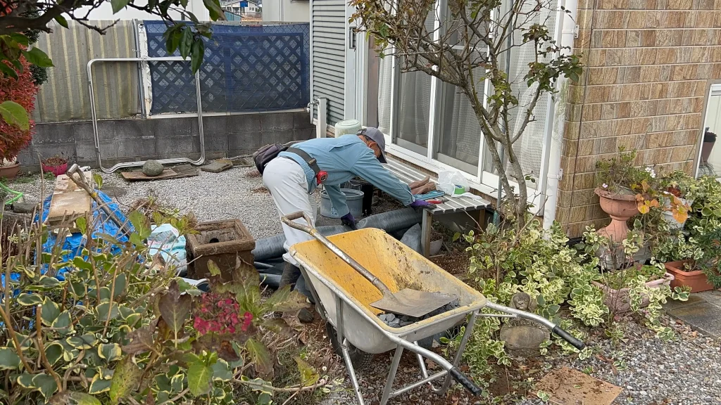今回のように、下水切替・カーポート・庭木整理・勝手口ドア交換を同時に行うと、