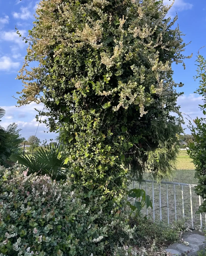 敷地境界(フェンス沿い)に樹木やつるが繁茂すると、手入れが追いつかず、落ち葉や越境リスクも増えます。